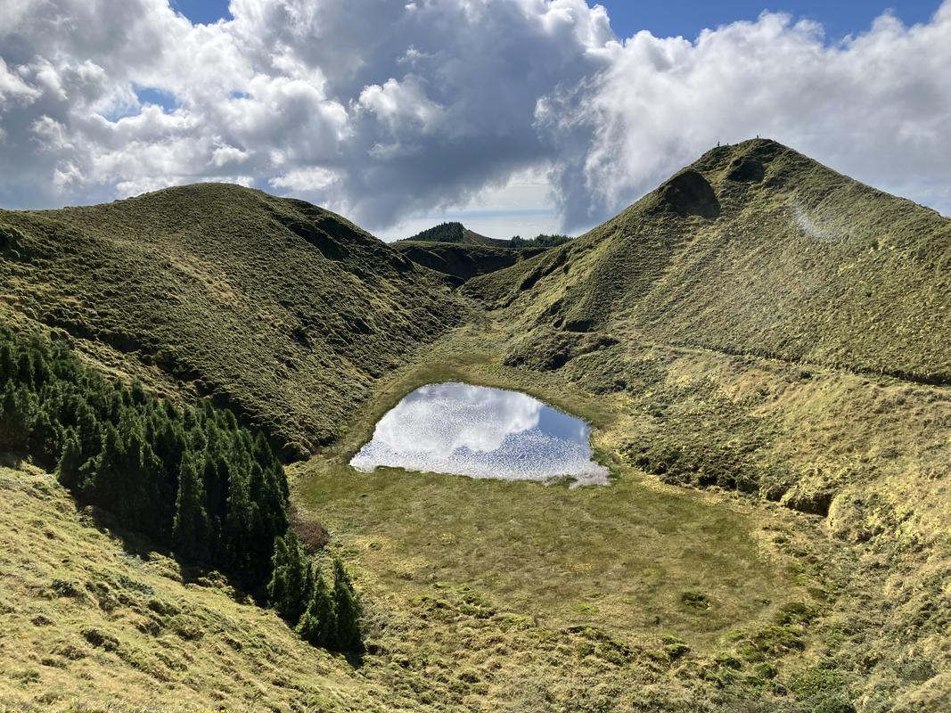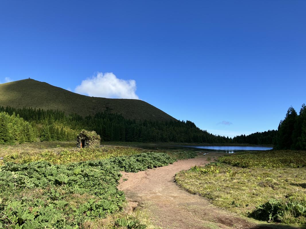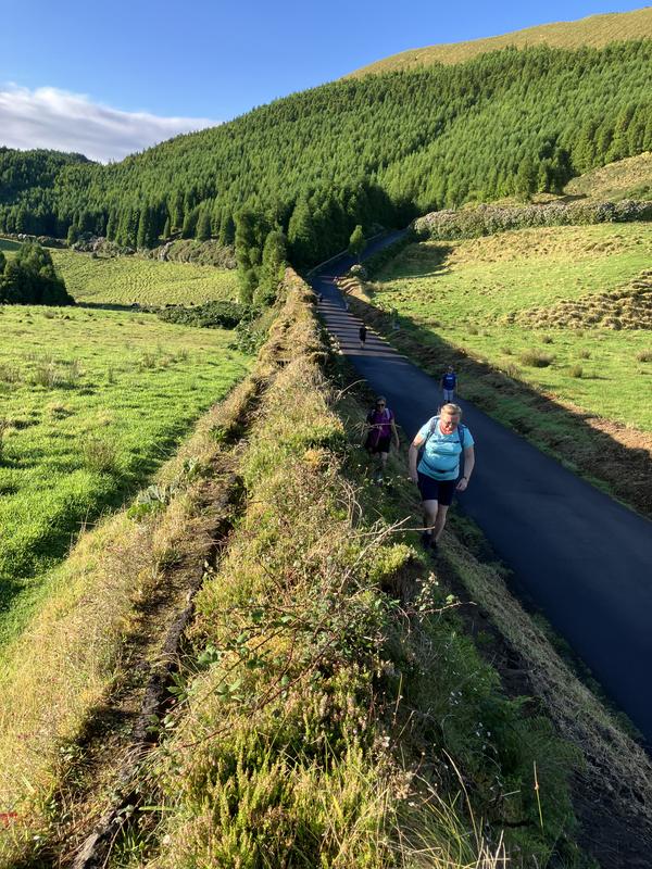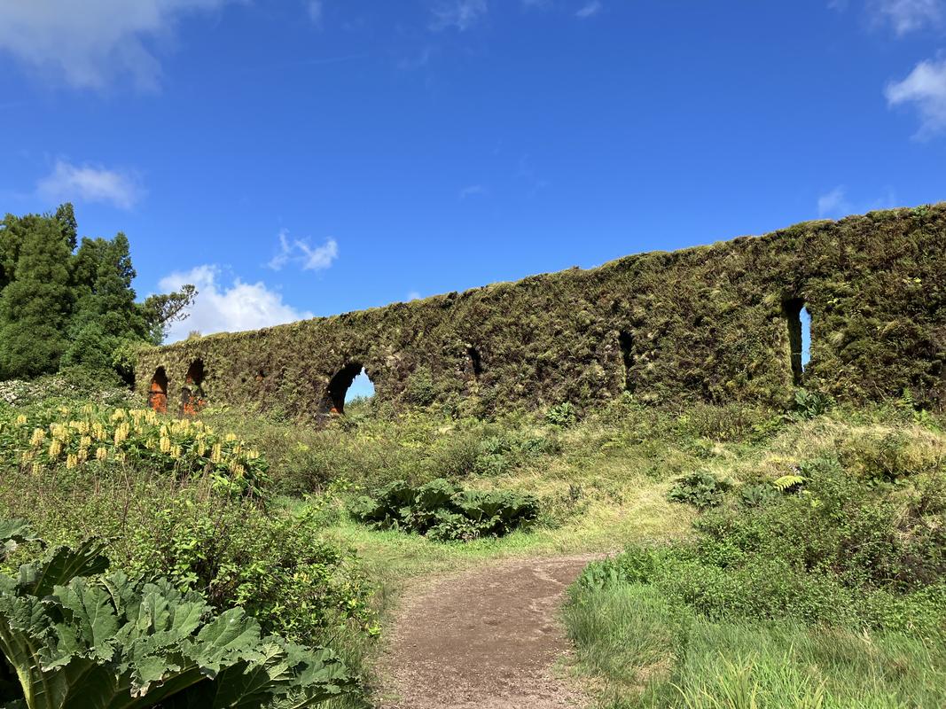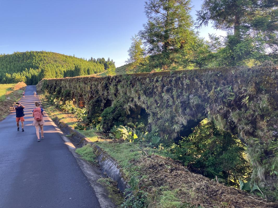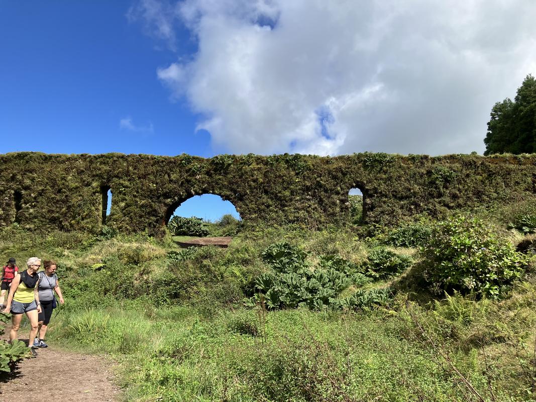 Došli jsme na rozcestí severovýchodně od Lagoa Rasa. Průvodkyně nás upozornila na pěknou vyhlídku do Pico do Paul, asi 500 metrů tam a zpět. Museli bychom ale popoběhnut, k čemuž jsem byl svolný jen já. Vystartoval jsem svižně do mírného kopce a trošku se podivoval, že se okolní terén vůbec neshoduje s mapou. Po 7 minutách běhu jsem se ocitl v místě, kudy jsme před hodinou procházeli. Přestože jsem absolutně nechápal, jak jsem se tam dostal, okamžitě jsem se otočil a spěchal zpátky. Monika si totiž spletla, nechala mne odbočit o křižovatku dřív, a já si to nezkontroloval. S pomocí mobilu jsem se chytil mezi Lagoa das Empadadas 1 a Lagoa das Empadadas 2 a podařilo se mi stihnout odjezd i vyfocení akvaduktu do Carvão. Ten byl postaven v 17. až 18. století a rovněž zajišťoval přepravu vody do Ponta Delgada.
