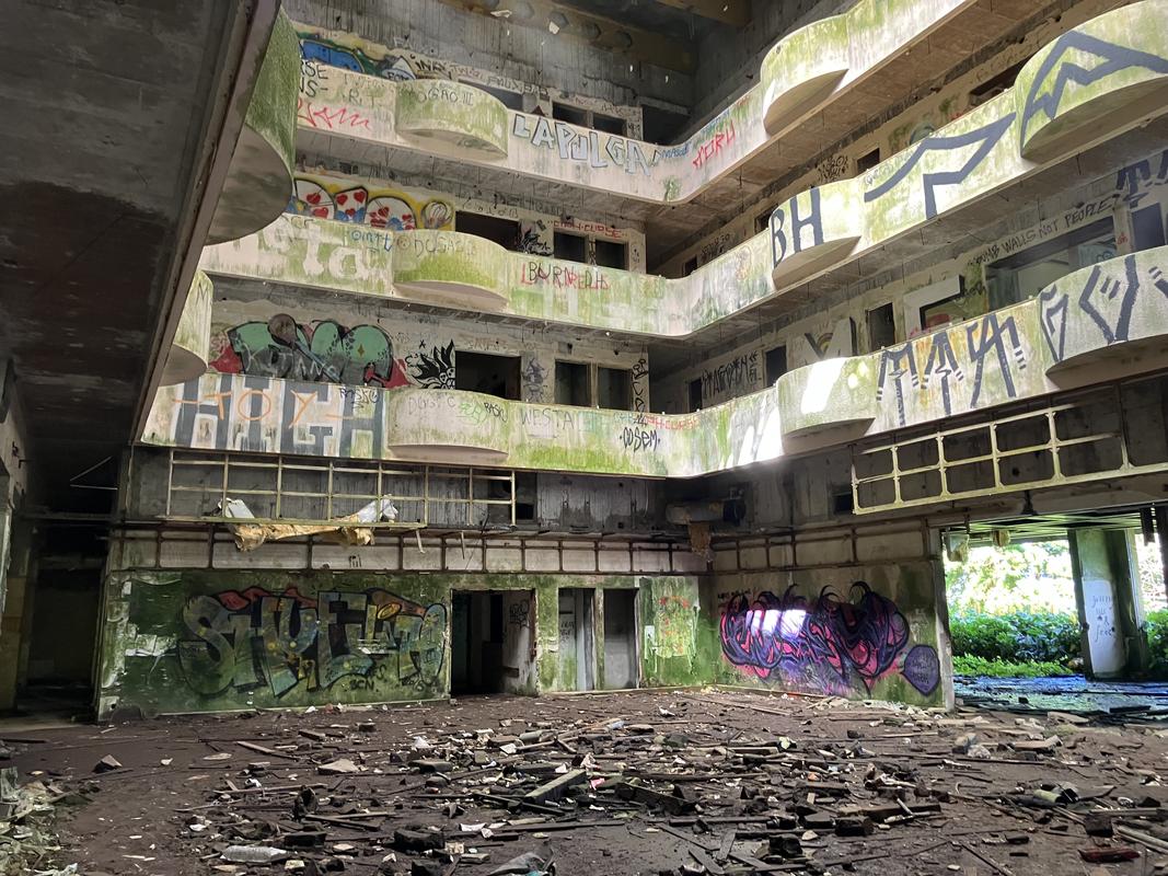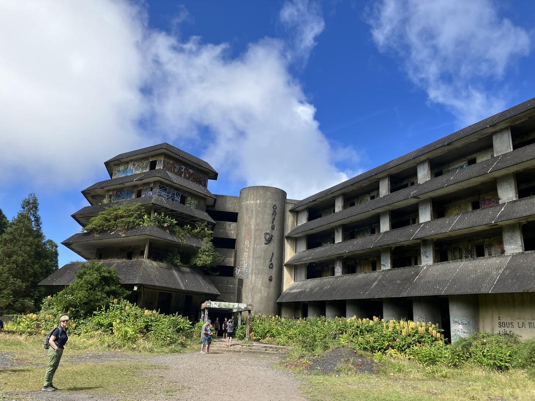 Mikrobus nás všechny dovezl k ruinám zkrachovalého pětihvězdičkového hotelu Monte Palace, postaveného na vyhlídce Vista do Rei. Ještě nedávno se do jeho areálu muselo lézt přes plot, nyní už si davy zvědavců prorazili pohodlnou vstupní bránu.