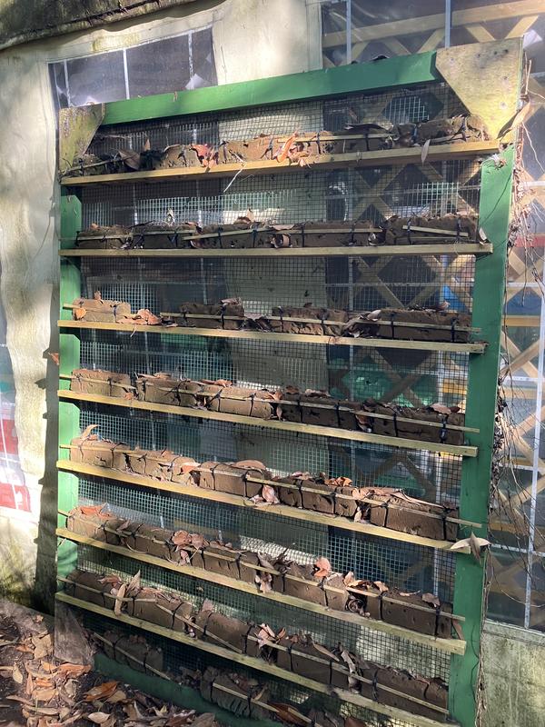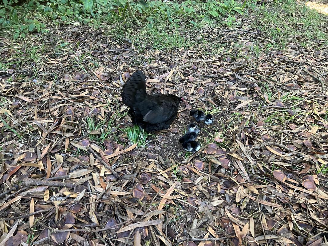Jako chlapec zvídavý, navyklý strkat nos úplně všude, jsem za jedním barákem objevil zajímavý dřevěný rám s policemi, na kterých byly vyskládány molitanové houby. Nejspíše slouží jako zařízení na klíčení semen. Také jsem potkal kvočnu s kuřátky. Přestože po areálu pobíhá spousta koček, zobaly si naprosto beze strachu.