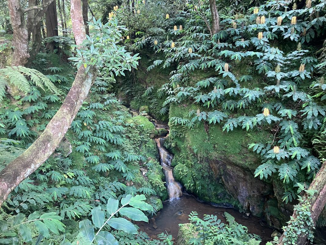 Cestou jsme potkali spoustu exotických rostlin. Z nepůvodních mne zaujaly např. leycestérie krásná (pochází z Asie), rdesno hlavaté (z Himalájí) nebo jihoafrická montbrécie (křešina). Vyfotil a doma jsem si určil také třezalku Hypericum foliosum Aiton, azorský endemit, který se vyskytuje na všech ostrovech.