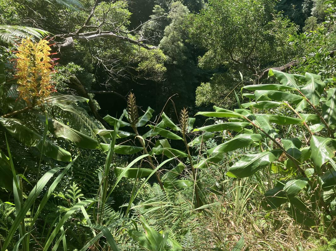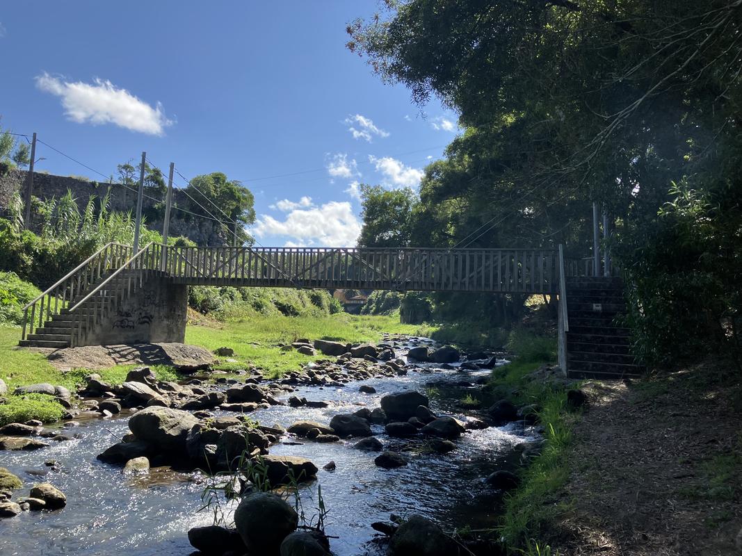 Po exkurzi jsem se odpojil od skupiny, abych se trošku proběhnul. Naplánoval jsem si cca 14 km okruh přes termální lázně, vodopád Salto do Cabrito, několik elektráren a dva pivovary. Vystartoval jsem po značené cestě podél malého potůčku. Po překonání lávky jsem si vyfotil invazivní, ale pěkně kvetoucí liboru měnivou.