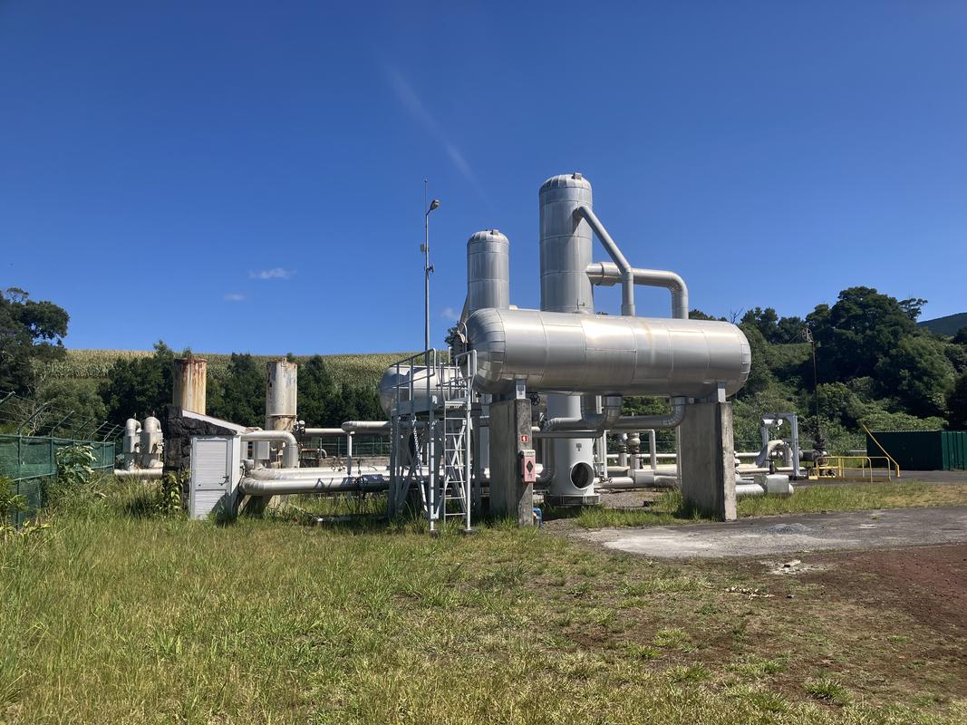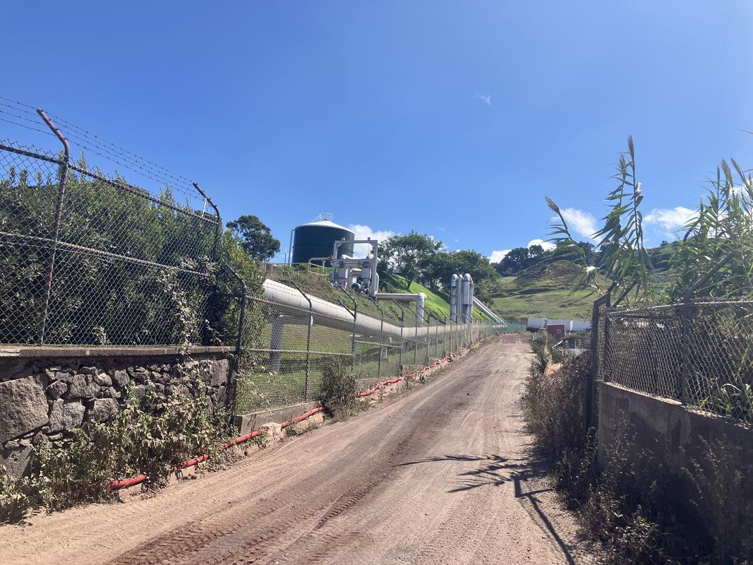 Dál už jsem musel šlapat po silnici. Vyfotil jsem si elektrické vedení, jehož sloupy stojí na kuželech trčících do výše v odtěženém lomu a došel k místní geotermální elektrárna do Pico Vermelho. Její výkon se má v blízké budoucnosti navýšit ze současných 12 na 20 MW.