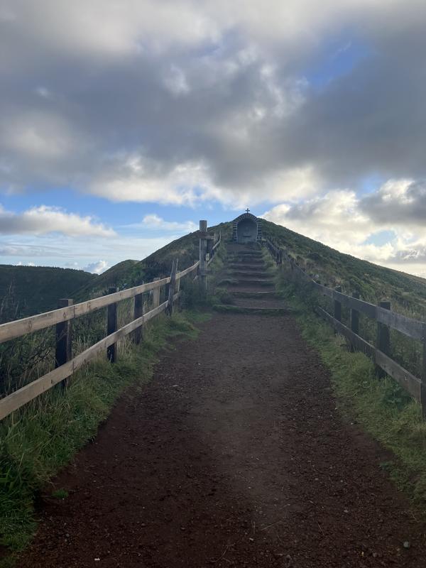 Trek začíná tunýlkem a pokračuje po schodech ke kapli de S. João Batista. Od tunýlku se můžete vydat také na druhou stranu, nebo dokonce sejít po pěšině dolů na dno kráteru.