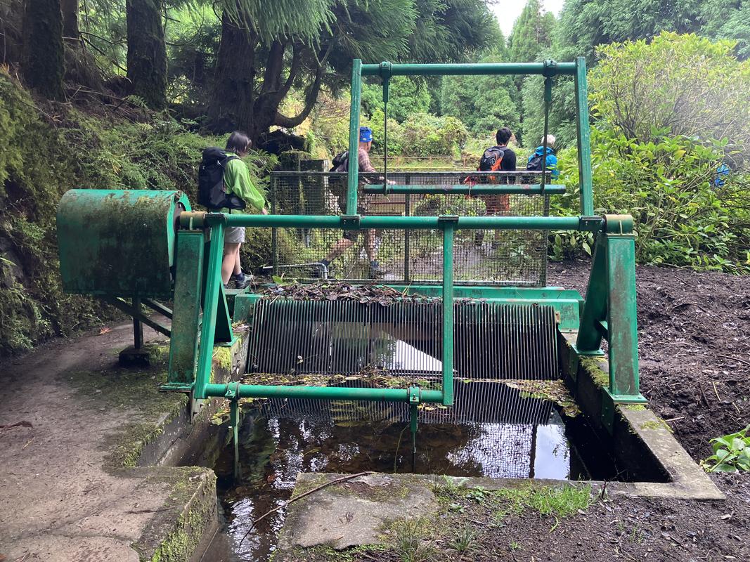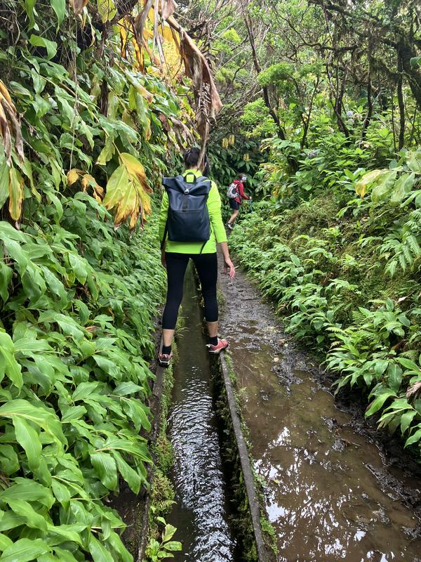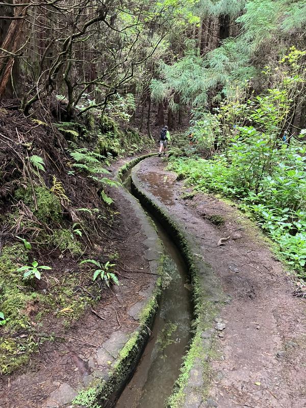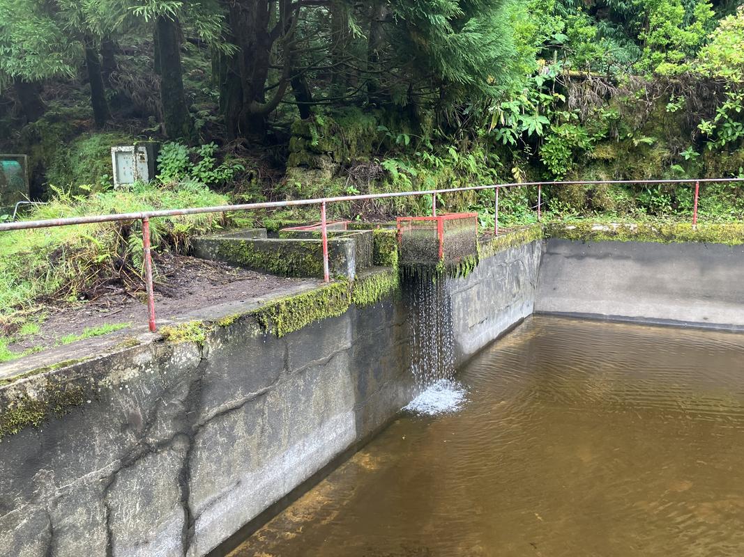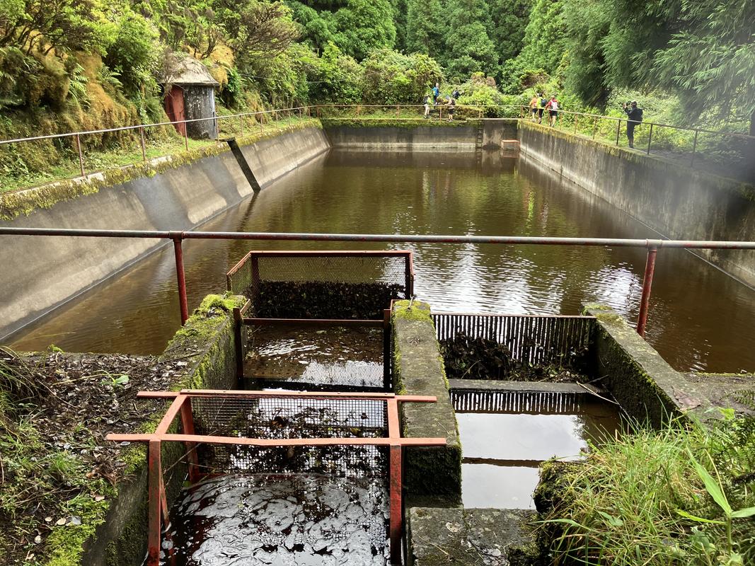 Serpentinami prašné silničky klesáme o 200 výškových metrů níže ke křižovatce s levadou, kanálem, který se téměř po vrstevnici obtáčí kol úbočí sopky Caldeira. Několik konstrukčně jednoduchých odtokových stavidel na jeho trase ve mně vzbudilo dojem, že slouží k odklonění vody do cílových míst, kde je více potřeba. Jelikož se tu prakticky nic nepěstuje, napadlo mne, že si tak třeba zjednodušují napájení dobytka. Až doma při psaní této reportáže jsem zjistil, že se jedná o napájecí zdroj hydroelektrárny do Varadouro (výkon 320 kW).