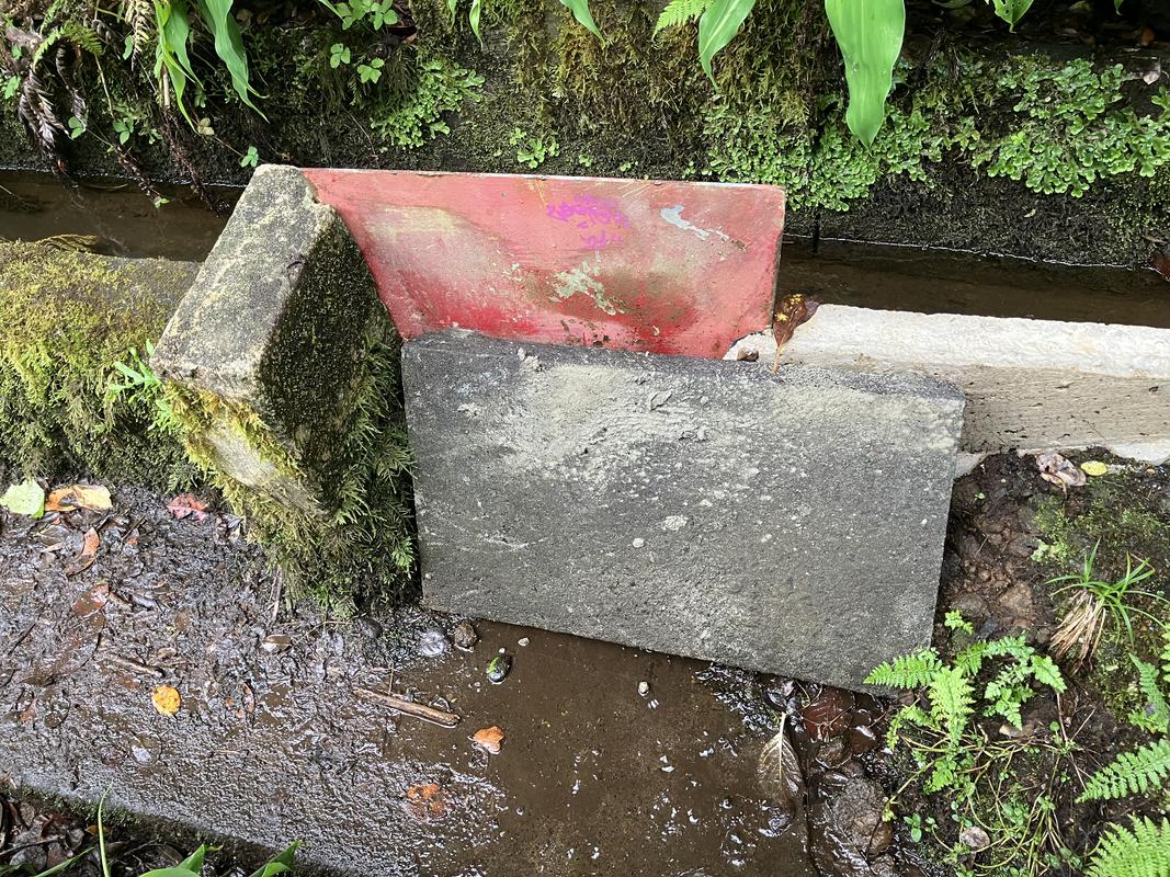 Rýha je dost široká, aby zabrala podstatnou část bahnité doprovodné pěšiny. Jdeme podél ní několik kilometrů a je to poměrně zábavné. Kanál je sem tam překryt dlaždicemi nebo vede po lávce akvaduktu, na několika místech je stezka zcela zaplavena kalužemi, takže nezbývá než balancovat po úzkých zděných okrajích koryta.