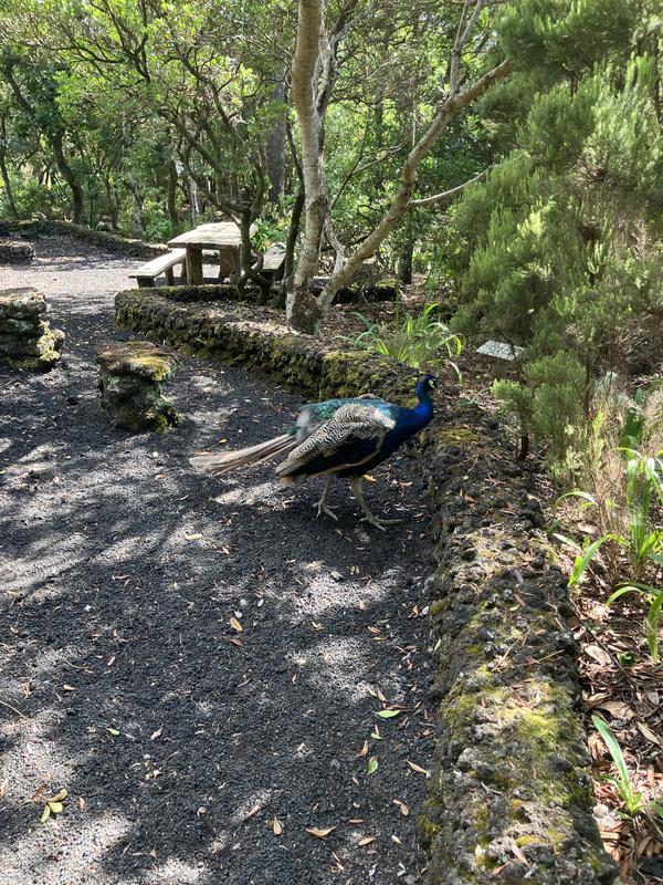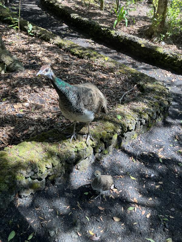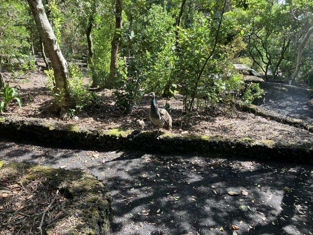 V parku mají hned několik veřejných záchodků, zřejmě oblíbené místo pro pikniky. Naše taxíky mají drobné zpoždění, tak jsem ještě stihnul vyfotit místní pávy, včetně pávice s pávátkem (skloňuji podle vzoru mávátko). Opatrně jsem se k ní přibližoval, bych jí nevyplašil, ona však rozhodně ostychem netrpěla a směle mi vyšla naproti.