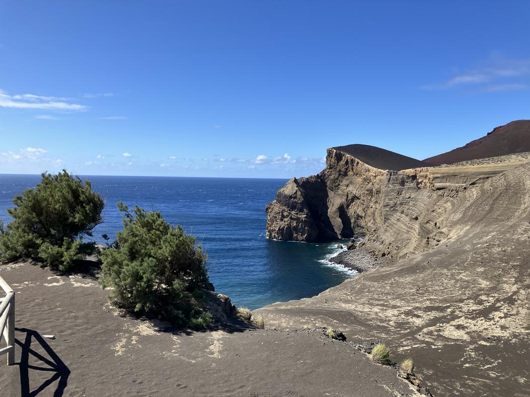 Koncem září 1957 zde během 13 měsíců mocné podmořské erupce vyrostl z moře nový vulkán, který dostal jméno Capelinhos. Jeho vznik byl sledován a dokumentován vulkanology. Této události a dalším vulkanickým jevům je zasvěceno zdejší Capelinhos Volcano Interpretation Centre, které bylo vyhlášeno nejlepším evropským muzeem roku 2012. Má otevřeno denně do 18:00 (poslední návštěvníky vpustí hodinu před zavíračkou). Vstupné stojí 10 € a kromě prohlídky muzea zahrnuje i možnost rozhlédnout se po okolí z ochozu majáku Capelinhos. Během naší návštěvy byl maják bohužel zavřený. Expozicí jsem musel jen letmo proběhnout, měli jsme příliš málo času.
