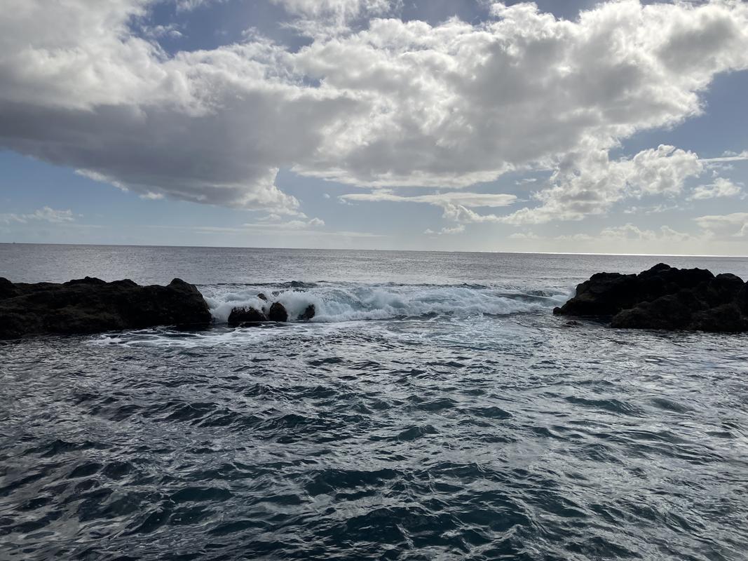 Vyzkoušeli jsme si i další dva vybetonované bazénky, které umožňují koupel v naprostém klidu a bezpečí. Příboj mezitím zesílil natolik, že skaliska už byla skoro zaplavená. Kdybychom přišli později, asi by z koupání nic nebylo.