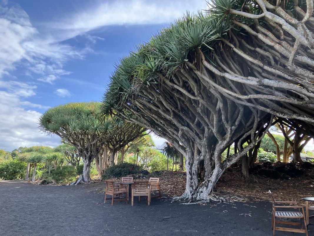 Celý areál je vyplněn sadem s exotickými stromy. Ochutnal jsem tam zralé fíky a guajávu, vyfotil ananasový květ a dračince (Dracaena draco), jejichž stáří se odhaduje na 500 až 1000 let. Z nejstaršího a největšího exempláře, kterému se říkalo “King Dragon” už dnes zbyl jen pařez.