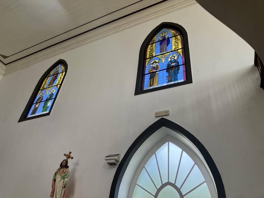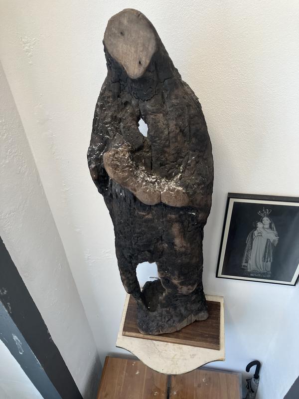 Při zpáteční cestě jsem vyfotil nádherný interiér kostele sv. Bartoloměje včetně dřevěné Madony s Jezulátkem, vytvořené ze samorostu.