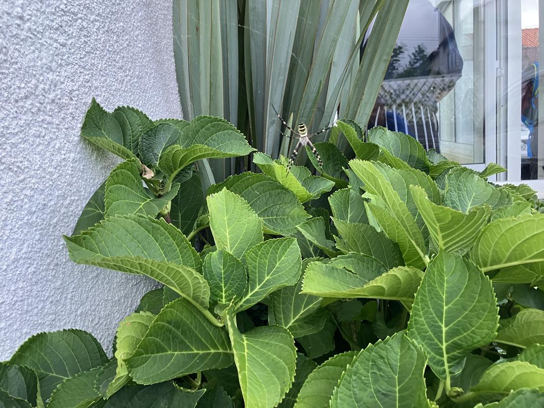 Po snídani jsem si na zdi hotelu vyfotil pavučinu s krásným křižákem pruhovaným, vzápětí jsme byli odvezeni na letiště do Pico. Z neznámého, asi zištného? důvodu jsme jeli delší trasou kolem pobřeží.