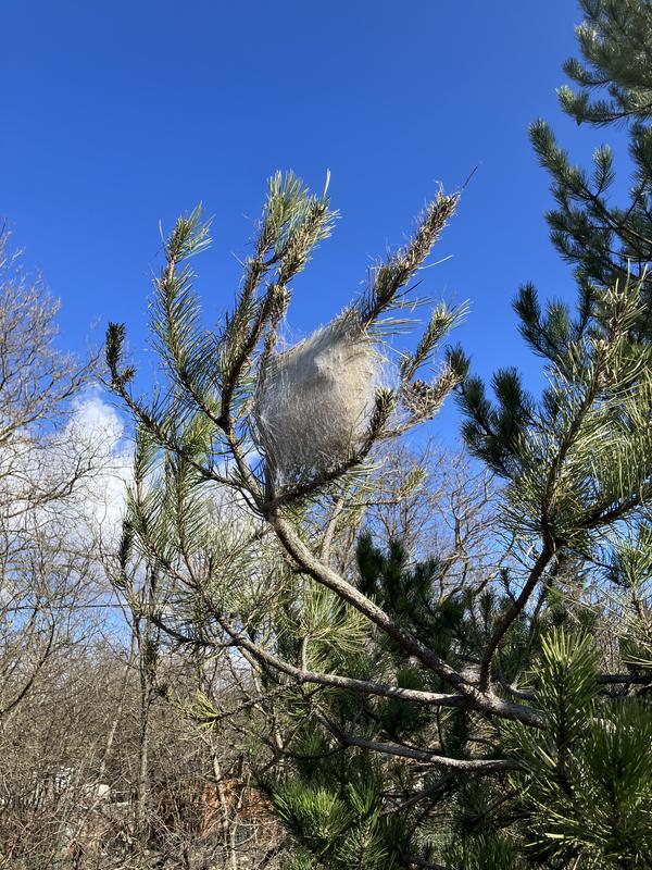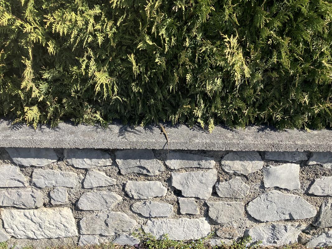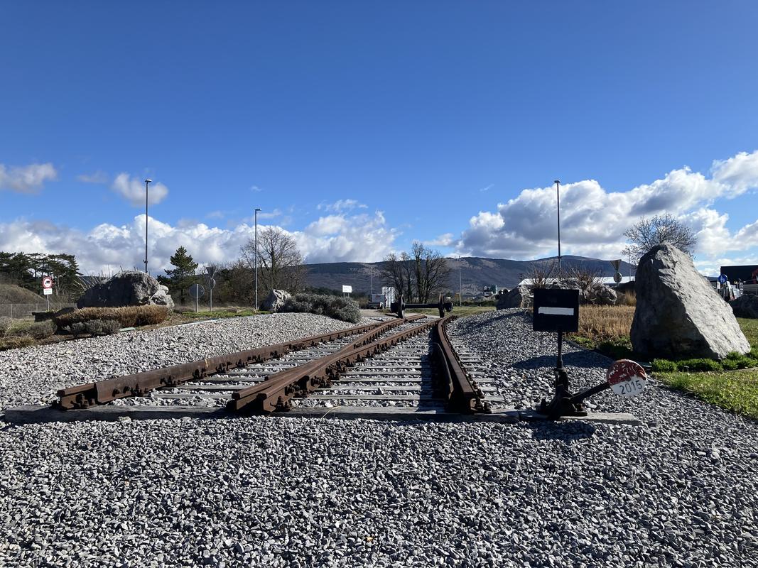 Po snídani procházíme přes Divaču směrem na jih, míjíme kapličku Panny Marie a zajímavý železniční památník, výhybku uprostřed kruhového objezdu. Fouká svižný větřík, chvílemi mi je docela zima. Na borovici tu visí zámotek, podobné už jsme potkali na řadě míst, a stále nevíme, oč se jedná. Podařilo se mi vyfotit i ještěrku.