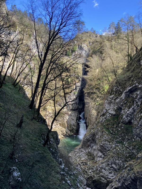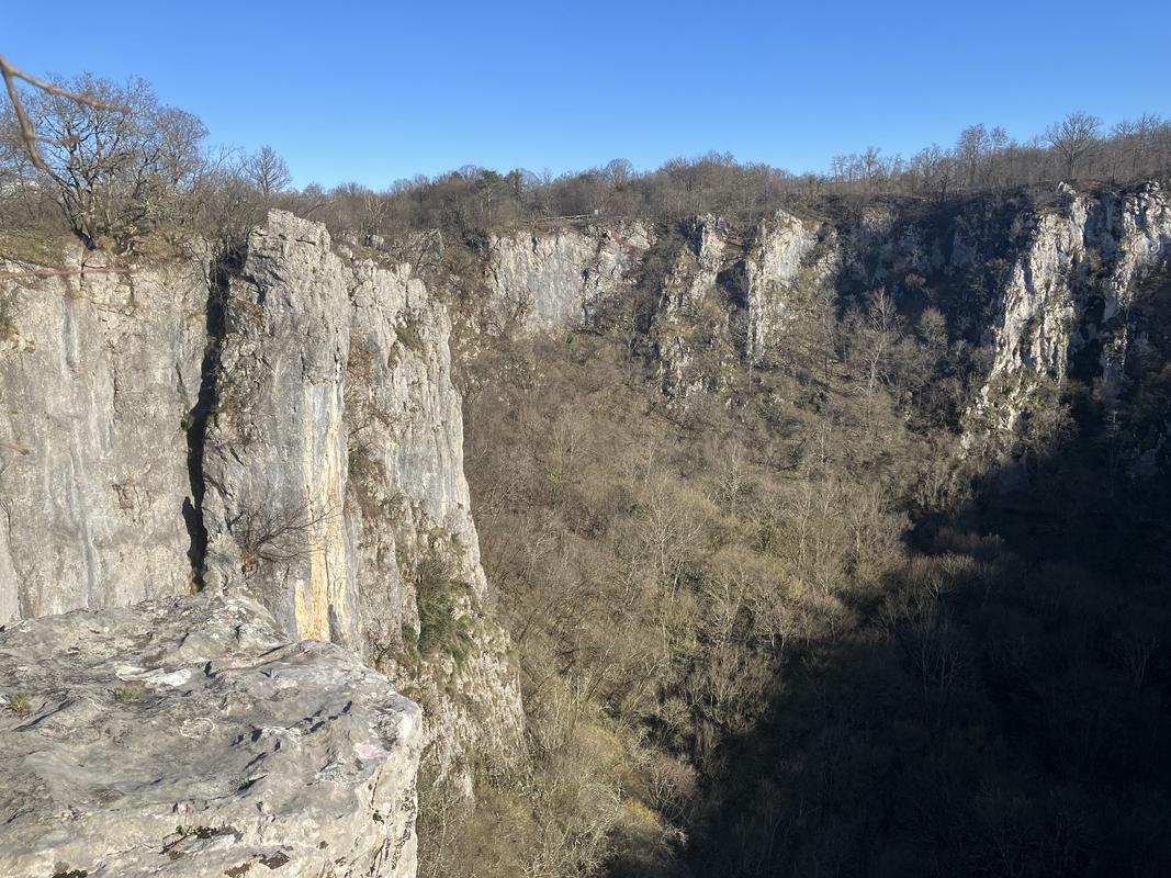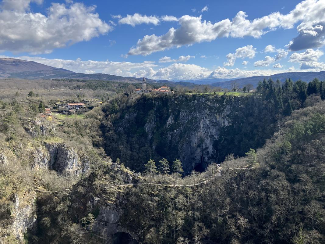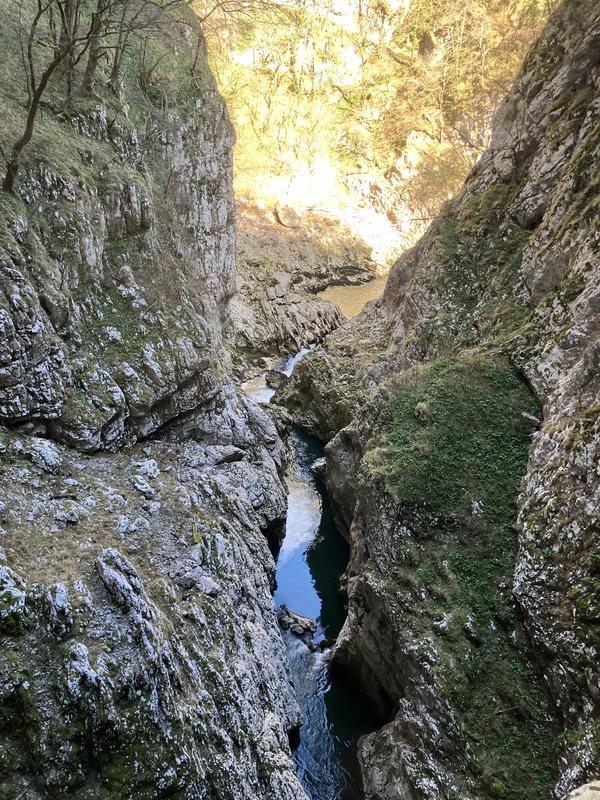 Zde začínají všechny prohlídky, teď mimo sezónu (do 1. května) je otevřená jen nejkratší, tříkilometrová trasa s cca 600 schody, která končí ve Velike doline. Uvnitř jeskyní se fotit nesmí, tak jsem pořídil jen pár záběrů poté, co jsme vylezli z díry na světlo. Domáhal jsem se možnosti vyjít ven z kaňonu pěšky, ale ani to se do května nemůže. Museli jsme povinně vyjet lanovkou.