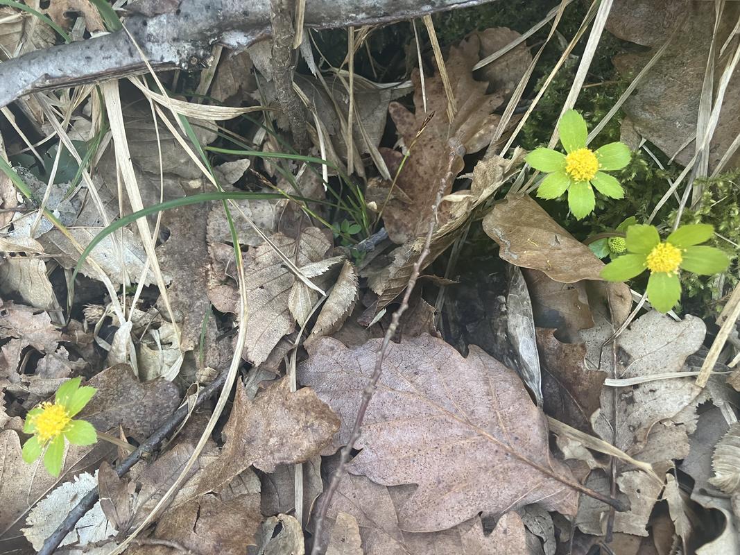 Na začátku cesty zpět nás zaujalo malé závrtové jezírko, tzv. kal, ve kterém se mihotalo spousta čolků, žab a jejich vajíček. Výlet jsme si prodloužili o okruh naučné stezky těsně před Divačou. Obchází kráter Risnik, dá se z ní odbočit ke třem jeskyním. Pečina Triglavca byla pěkná, i s náznakem krápníků, Mala Triglavca byla plná zbytků stavebního materiálu a Brezno pri Risniku chránila uzamčená mříž. Cestou jsem si vyfotil hvězdnatec zubatý.