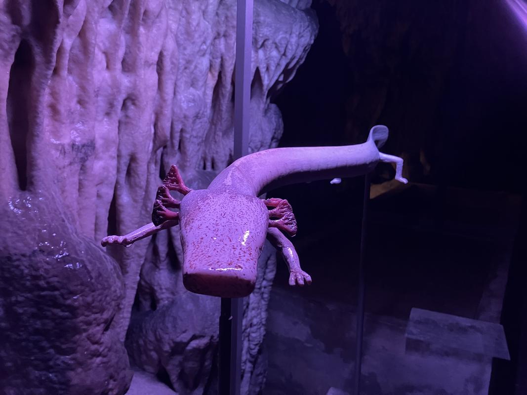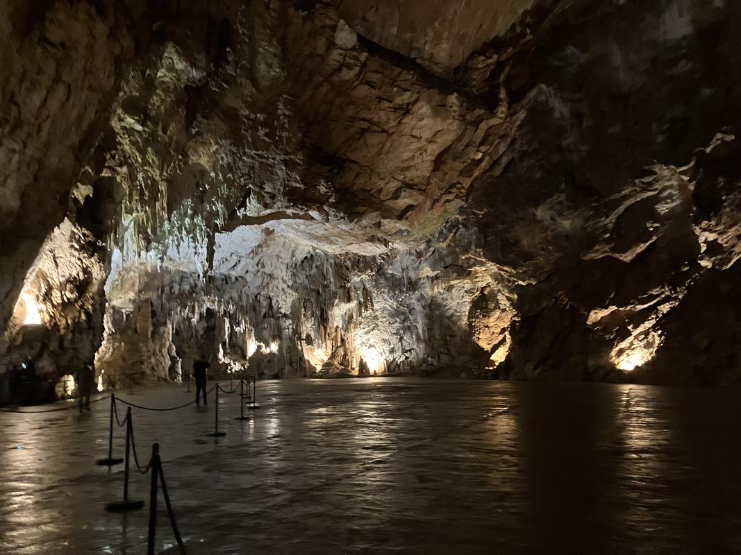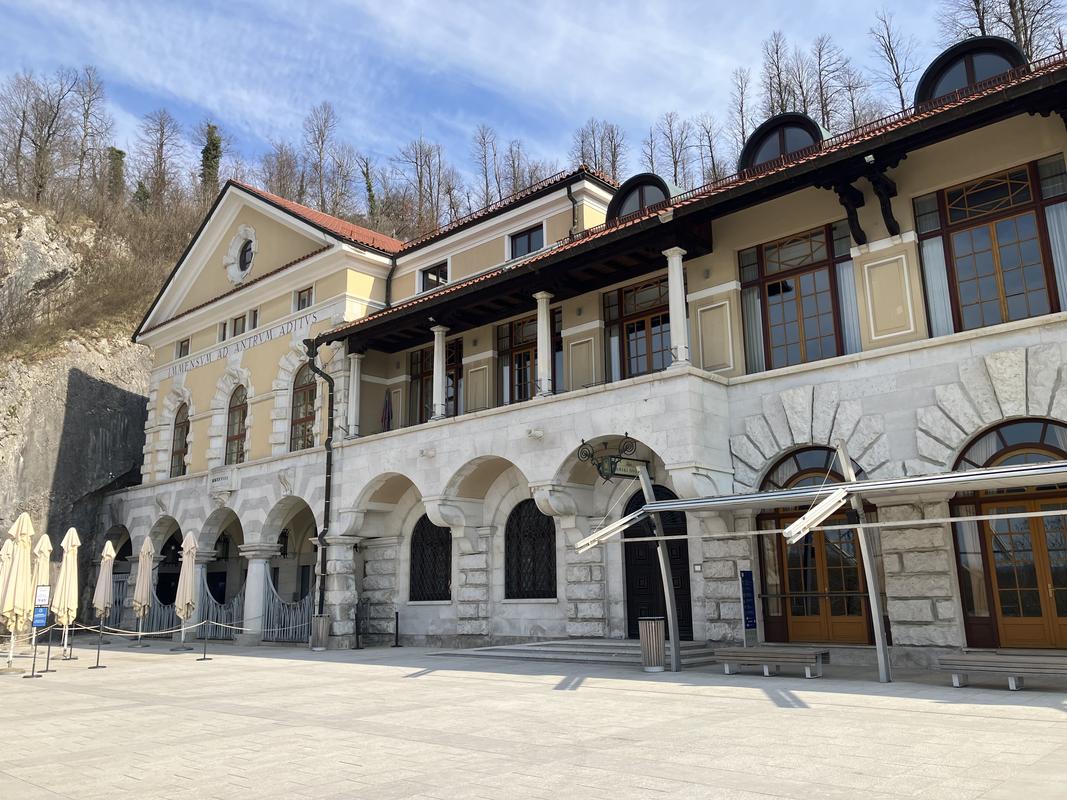 Zdejší jeskynní areál, který je druhý nejrozsáhlejší ve Slovinsku, nabízí několik druhů vstupenek. My si vybrali trojkombinaci jeskyně s muzejní expozicí a viváriem za 42.9 €. O muzeum zájem nemáme, ale chceme do vivária, kde mají akvárium s macaráty. Kdybych tušil, že je ukazují i dole na konci hodinu a půl dlouhé prohlídky, spokojil bych se s holým vstupným do jeskyní za 32.9 €.