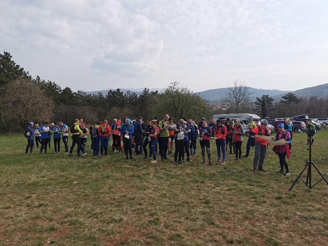 Dvě hodiny před koncem limitu jsme začal dokonce zvažoval, zda bych se neměl pokusit o 230 bodů na hřebeni, který sousedil s mým doběhovým koridorem. Měřil jsem si časy mezi kontrolami a počítal rychlost na kilometr vzdušnou čarou (10 min. po rovině, 11 na mírně zvlněném postupu a 12 až 13 minut do prudšího kopce). Vyšlo mi, že pokud do 16:00 vyšplhám do závrtu na hřbetu cca 5 kiláků před cílem, mohl bych to stihnout. Přiběhl jsem tam v 15:59. Následný táhlý postup směr propast Petnjak, a hlavně sestup a výstup kvůli oražení kontroly v hloubi tamní jeskyně, kterou jsme s Dášou navštívili jako výletníci, mne dost zlomil. Vycházelo mi, že i když neudělám chybu, tak těsně nestihnu limit. To by tolik nevadilo, každá přetažená minuta se trestala jen odečtením jednoho bodu, jenže kdybych někde zakufroval, tak by hrozila výraznější penalizace. Zvolil jsem proto kompromis – nejkratším postupem po hřebeni a podle času když tak posbírat drobky poblíž cíle. Ke konci už mi to moc nemyslelo, tak jsem trošku zazmatkoval před kontrolou 41, nicméně stihl jsem zobnout ještě kontroly 53 a 35. Na té mi zbývalo přesně 25 minut, což znamenalo, že mohu těsně dát i poslední k. 34. Jenže její stojan přede mnou schovali do kamenné jámy v rozbitém terénu, takže jsem ho přeběhl a musel se vracet. Pak už to byl hop nebo trop. nejprve pohodový seběh z kopce a na závěr úplně mírňoučký stoupáček, jenže na 44. kilometru. Přesto mi GPS logger naměřil poslední stovku za 20 vteřin a cílová časomíra se mi zastavila 33 sekund před limitem. Uff.