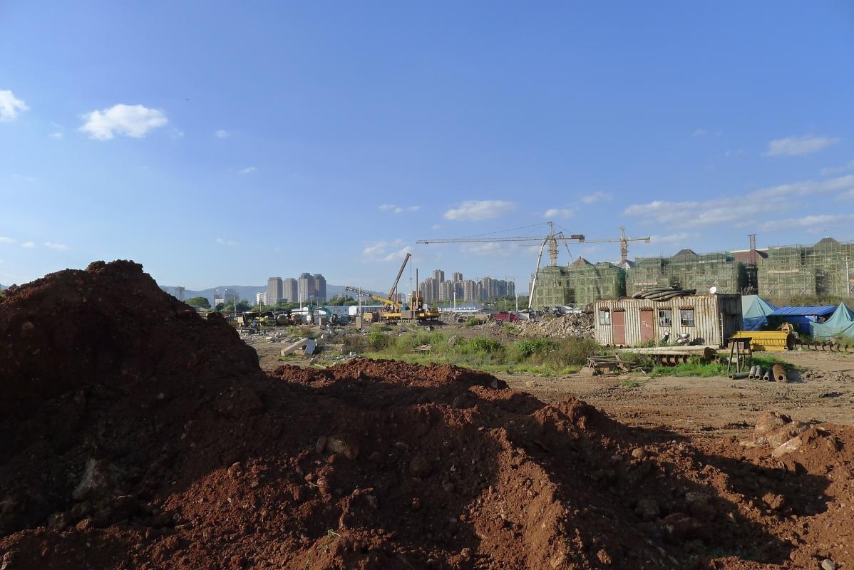 Kunming bývá nazýván “městem květin”. Marně jsem přemýšlel proč. Číňané si na kytky docela potrpí, ale tady jsem jich během našeho krátkého pobytu viděl určitě méně než v jiných městech. Naším cílem bylo dojít do nějakého parku, zahrady… V mapě jsme si našli zelený flek, a vydali se směrem k němu. O pár bloků dále nám ale cestu zatarasilo obrovské staveniště. Rozhodli jsme se skrz něj projít, neb jsme nevěděli, kudy a zda vůbec ho lze obejít.