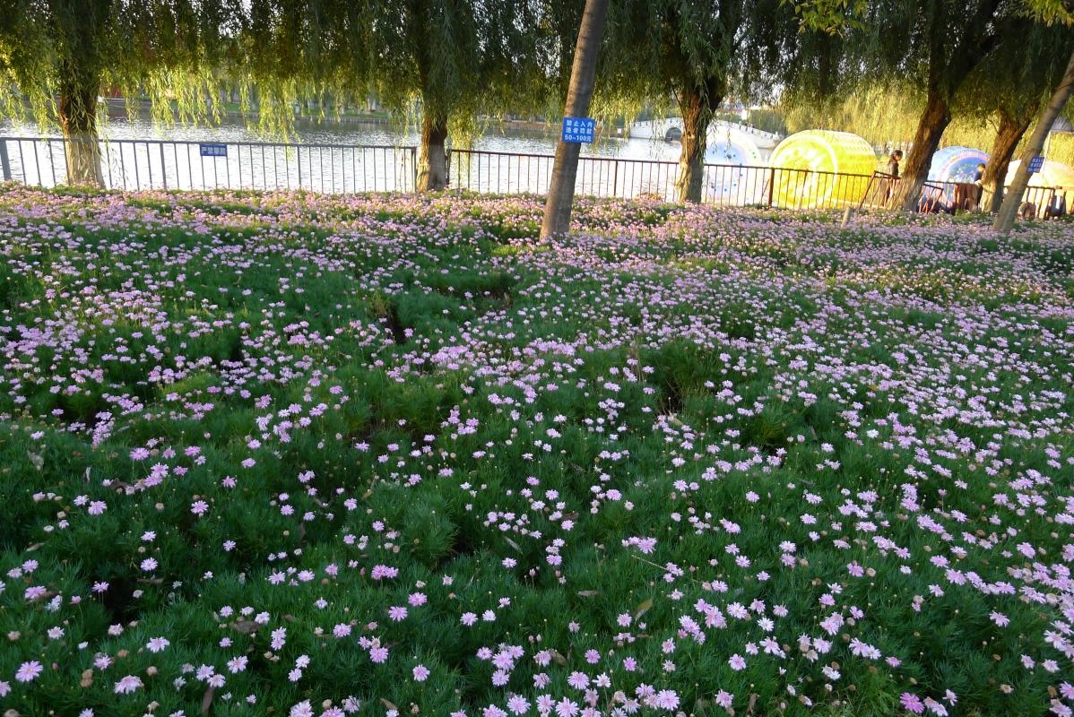 Hned za vchodem nás přepadl Halloween. Číňani si libují v americkém kýči. Prošli jsme okolo typické čínské skály, u které nevíte, zda je přírodní, nebo jí slepili maltou (pravda asi bude někde uprostřed). Měli tam i několikapatrovou pagodu, do které nás bohužel nepustili, a spoustu dalších atrakcí. Sochy a artefakty, vodotrysk v jezeře, aquazorbing pro děti, pouštění draků či zákaz trhání kytek pod pokutou 50 - 100 juanů.