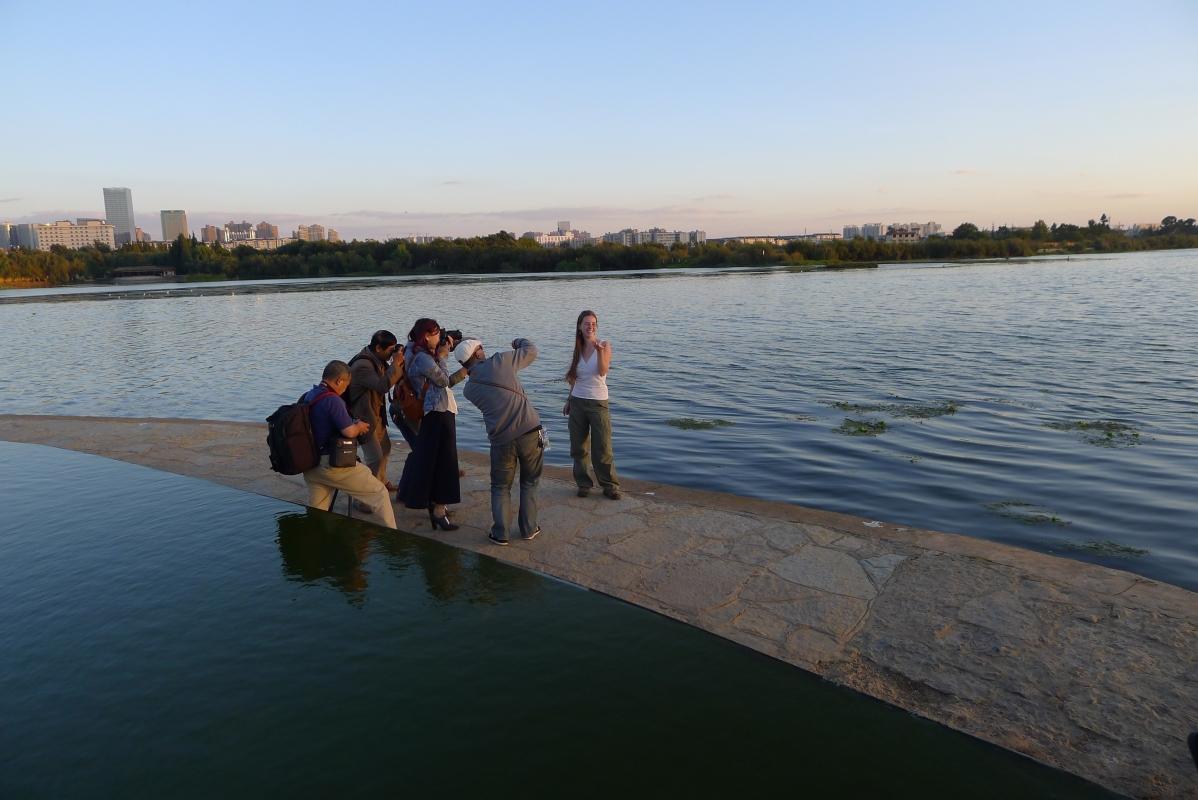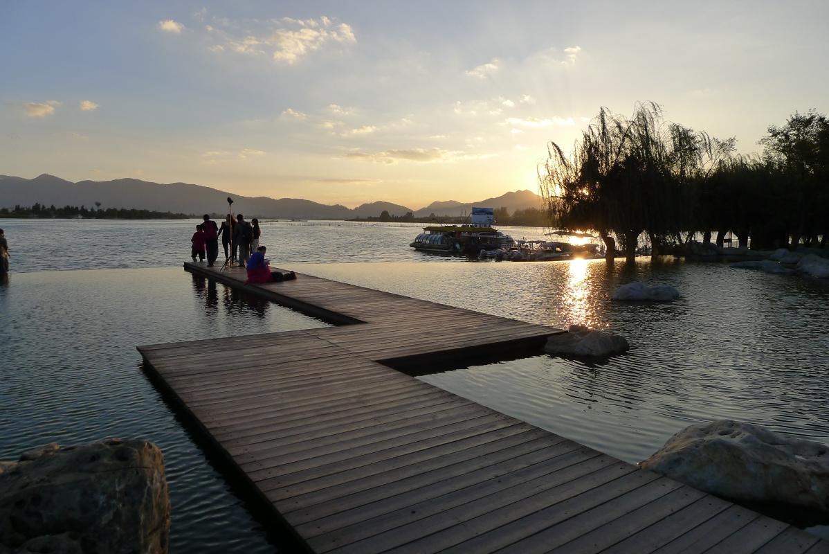 Došli jsme k nějakému molu, kde profesionální fotografové fotili místní modelku. Jakmile spatřili Páju, okamžitě se vrhli na ní a přinutili jí zapózovat. Chudinka Číňanka musela počkat :-). Brzy však slunce zapadlo definitivně, a my museli zpět k autobusu.
