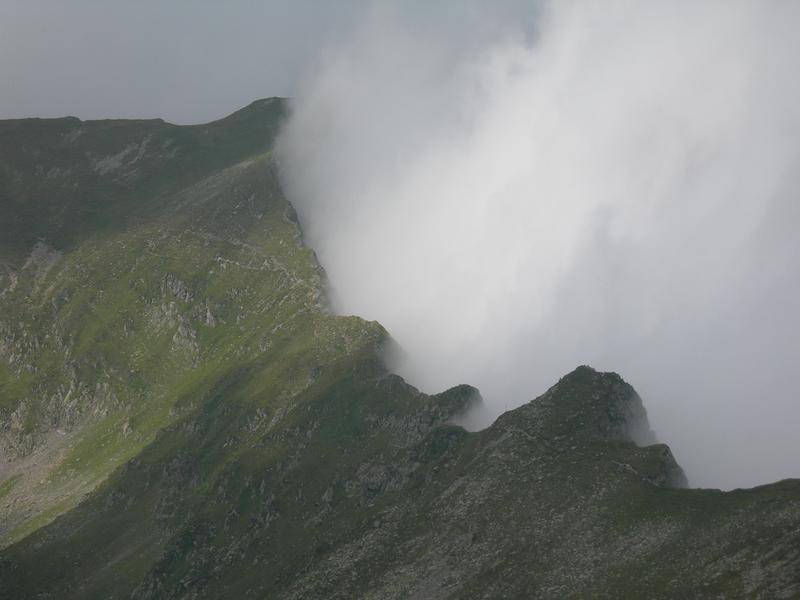 Odpoledne se přehradní hráz fagarašského hřebene tradičně začíná naplňovat mraky. Vracíme se na Vistea Mare, zhruba hodinku se občerstvujeme a pak pokračujeme dál směrem k cabana Pogragu. Domlouváme se, že nebudeme