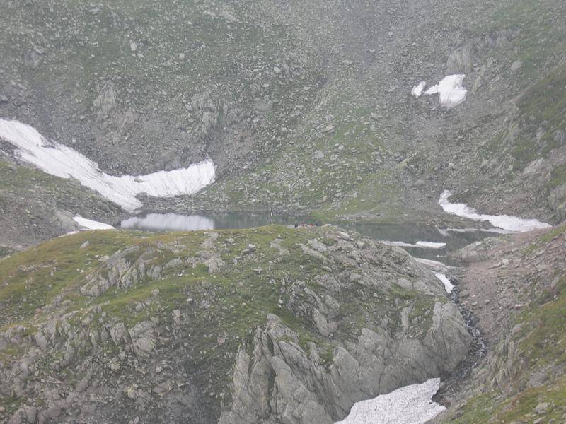 odkud je to dle rozcestníku 20 minut k cabaně Podragu (ve skutečnosti spíš víc, asi chtějí nalákat turisty). Přebíráme od děvčat batohy a posíláme je jako předvoj do hospody. K bivaku u jezera docházíme za čtvrt hodiny,