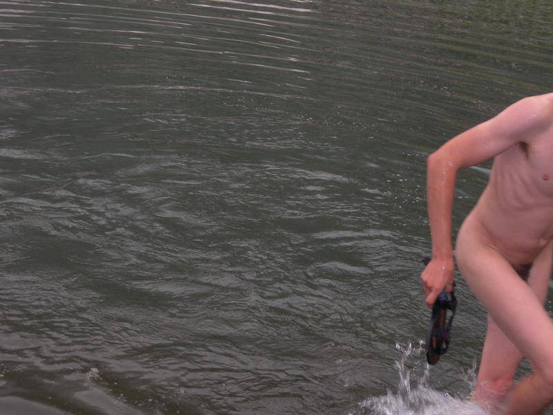 jde do vody Ivo a navrhuje, že se jen smočíme a vylezem. Mně se ovšem voda nezdá zas tolik studená, zkouším tedy doplavat až ke kře a Ivošovi nezbývá než plavat taky :-). U kry se obracím, čekám na zástavu