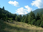 Po hodině chůze míjíme krásnou loučku, jakoby předurčenou k přenocování, ale k vodě je to odsud asi daleko.