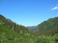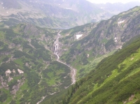 V půlce výletu, před nějtěžšími pasážemi ferraty je sedlo, ze kterého se lze vrátit zpátky k chatě u jezera. Začíná docela hustě pršet a Mílovo koleno bolí, tři z nás se vrací. Také jsem váhal, první část mne docela vystrašila, nicméně se ještě spolu s dalšími dvěma šílenci vydávám absolvovat celou trasu. Déšť a chlad je nepříjemný, ale skála už nijak zvlášť náročná není. Celou dobu čekám, až se dostanu do nějaké krkolomné pasáže a najednou byl konec. Jenom sis musel dávat pozor abys na vlhkém povrchu neuklouznul.