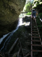 Ubytováváme se v penziónu Repka (na mne až moc velký luxus), stihneme oběd v protější restauraci a vyrážíme na první tůru údolím Suché Belé. Po dřevěných i kovových žebřících zdoláváme Mísový vodopád: