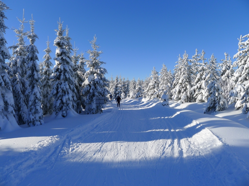 na plánek stop v okolí Schellerhau. Vyjel jsem na Kahleberg, pak dolů a dál na okruhy za silnicí Altenberg - Rehefeld. Perfektně upravený byl celý okruh okolo kopce Pöbelknochen. Stopa Osterzgebirge, která vede paralelně se silnicí, byla též super, až na jeden lesní sjezd těsně za chatou Paradies, kde doporučuji sundat lyže. Z parkoviště SV od vrcholu Kahlebergu jsem namísto strmého a vypluženého průseku Schneise 31 raději zvolil návrat po pozvolnějších a vysněženějších cestách Evasteig a Moorweg. K hraničnímu přechodu jsem dobruslil po klasické hlavní Kahleberské magistrále. | ||||||||||||||||||||||||||||||||||||||||||||||||||||||||||||||||||||||||
