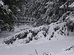 napojuje na sjezd do Zaunhausu. Po lávce jsem překonal hraniční potok a ověřil si, že na české straně rolba ještě nefunguje. Klasickou stopou jsem se