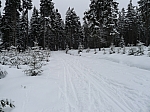 neprojetých průseků. Pozdě odpoledne jsem se vrátil na vyrolbovanou stopu nad Schwartzer Teichu. Objel jsem část okruhu najetého u Wüster Teich, který se