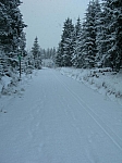 Můj typický tréninkový den se skládal z objetí okruhu Jense Weisspfloga přes Oberwiesenthal, dobytí vrcholu Fichtelbergu, přesunu na oběd do Božího Daru a zpět do Němec na urolbovanou cestu pod závodními okruhy. Nakonec zas Fichtel a domů do tepla. Mrzlo docela dost, zažili jsme lyžování při -19°C. Můj vlastní pot zamrzal v textílii bundy, při každém odpíchnutí jsem nádherně křupal :-), a při každém sebekratším zastavení mi zamrzaly i propocené prsty rukavic. Docela to bolelo, než se zas rozhýbaly.